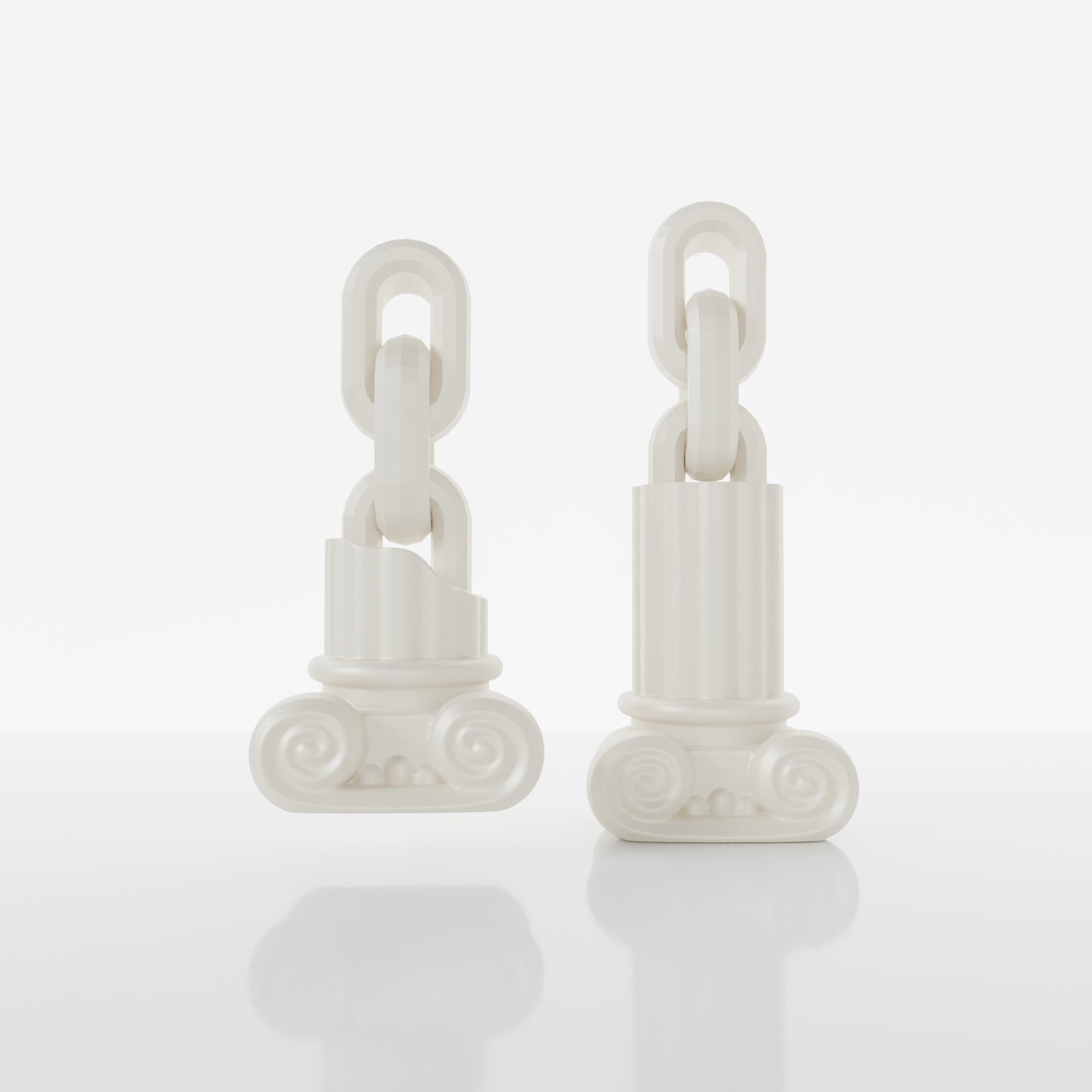 3D-printed from eco-friendly PLA, these mix & match earrings feature a whole column on one side and a broken one on the other—symbolizing the rise and fall of empires. Designed to be mixed with other earrings from our collection for endless styling possibilities.